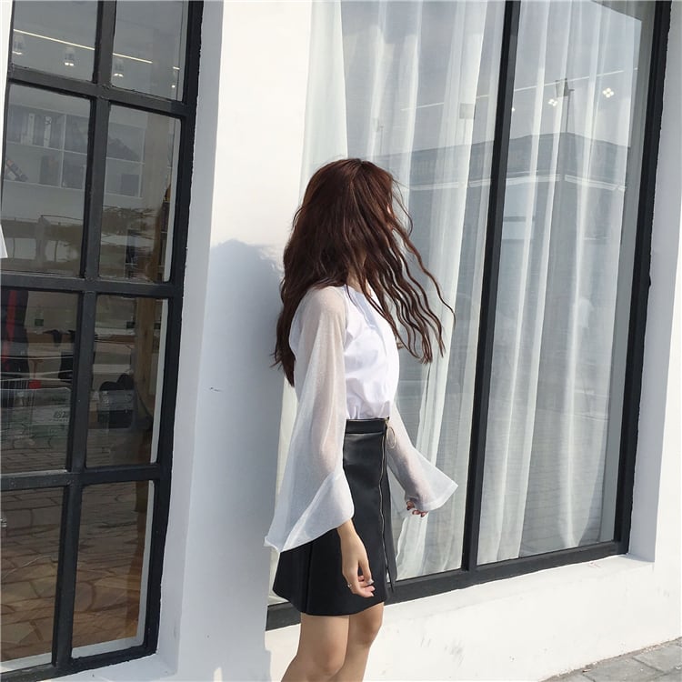 トップス レディース シャツ ブラウス Tシャツ プルオーバー 長袖 無地 かわいい フレアスリーブ ボリューム袖 ラメ キラキラ 透け感 大人カジュアル カットそー ロンT 可愛い トップス コーデ セクシー 着やせ ブラック 黒 ホワイト 白 トップス オフィス OL 通勤 学生 通学 デート モテ 春 秋 10代 20代 30代 新作 大きいサイズ db0771