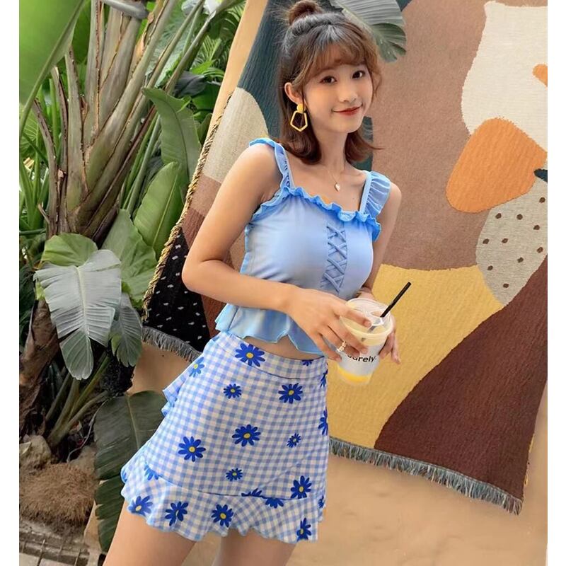水着 レディース ビキニ タンキニ かわいい 体系カバー 花柄 フリル パット付 レースアップ ハイウエスト ラブリー 無地 上下セット 水着 セパレート ミニスカート ガーリー 可愛い スパ ビーチ プール リゾート ヘルシー グリーン イエロー ブルー 緑 青 黄色 おしゃれ OL 学生 デート 夏 10代 20代 30代 新作 大きいサイズ db0792