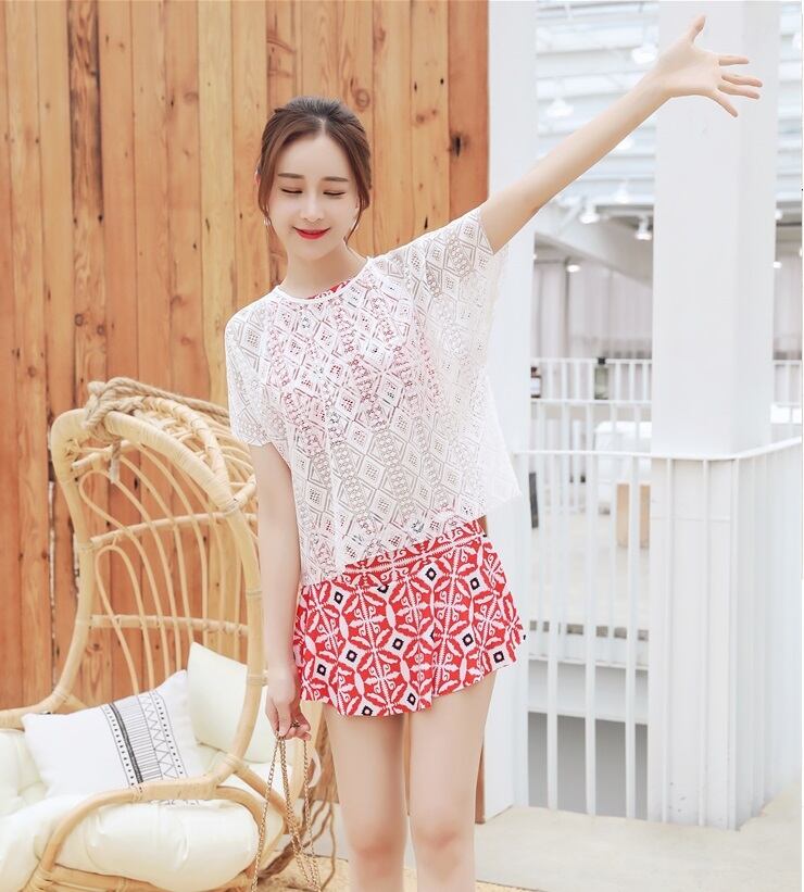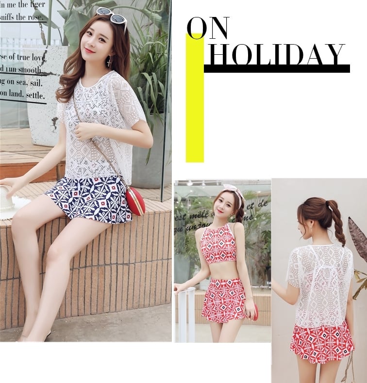 水着 レディース ビキニ 体系カバー タンキニ かわいい スポーティ 3点セット 上下セット Tシャツ 半袖 レース パット付 総柄 アジアン 水着 ラッシュガード スポーティ ママ セパレート 日よけ 透け感 カジュアル スパ ビーチ プール リゾート ヘルシー ネイビー 紺 レッド 赤 OL 学生 デート 夏 10代 20代 30代 新作 大きいサイズ db0788