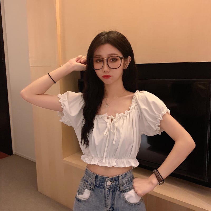 ショートトップスからの肌見せと、ヘルシーなショートパンツの上下セット。