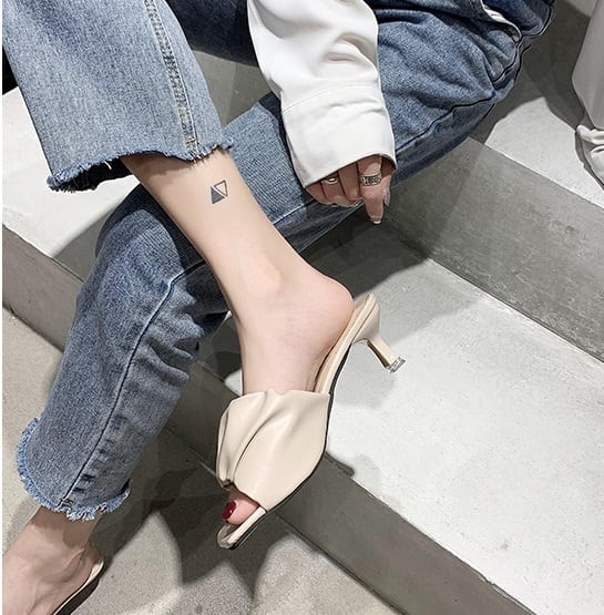 年代を問わずご愛用頂ける、細目ヒールのきれいめミュールです。