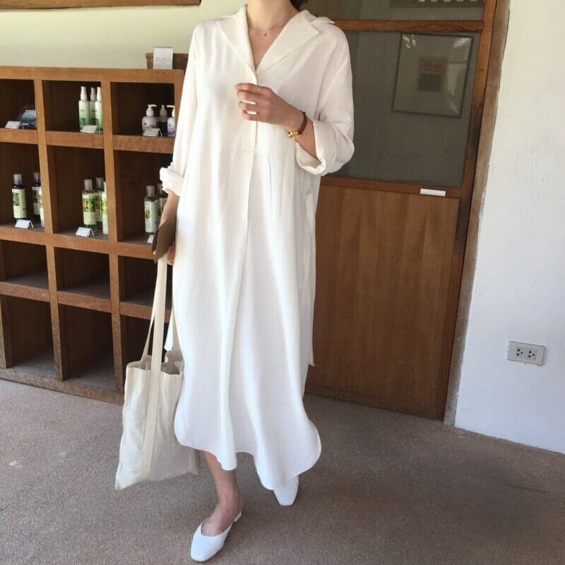 シャツワンピース ロング ワンピース レディース シャツ ロング 綿 長袖 きれいめ シンプル おしゃれ こなれ感 とろみ感 ロールアップ Vネック スキッパー 無地 春 夏 秋 10代 20代 30代 40代 大人カジュアル ワンピース コーデ 体型カバー ゆったり 楽ちん ママ ワンピース 白ワンピ シンプル ワンピ シャツワンピ ミセス ハイウエスト 通勤 OL オフィス 学生 通学 デート ホワイト 白 カーキ ブラック 黒 ベージュ 韓国 ファッション レディース ワンピース db0986