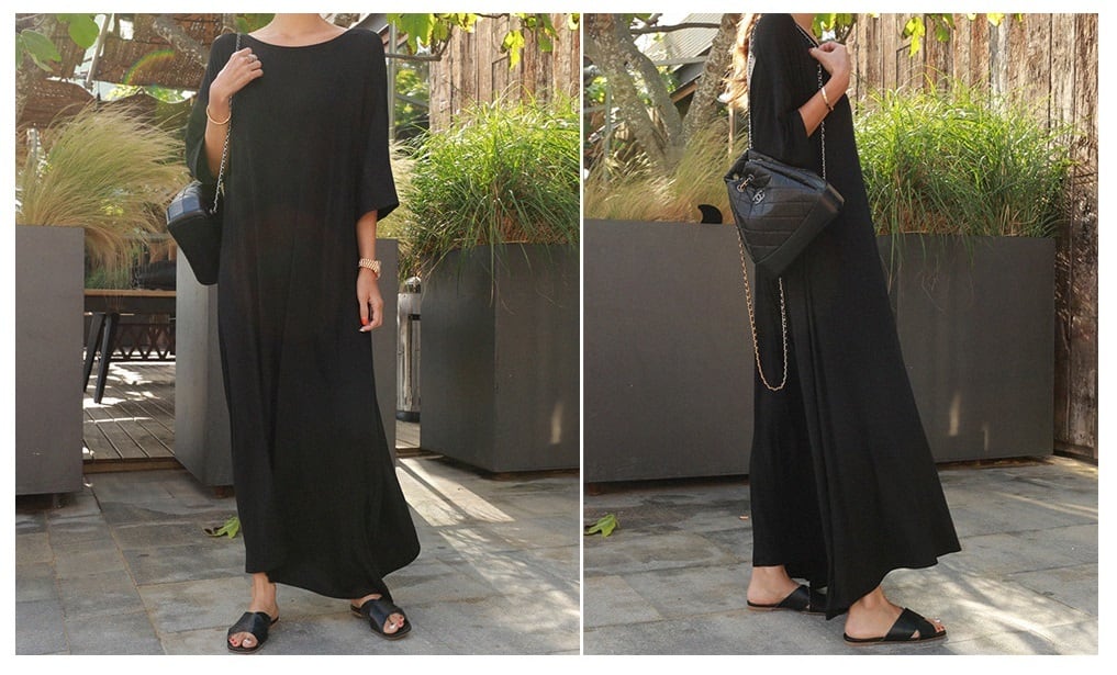 ロングワンピース ワンピース レディース きれいめ シンプル 無地 黒 ピンク マキシ丈 ロング Aライン コットン100% 綿 半袖 五分袖 フレア 春 夏 秋 10代 20代 30代 40代 ラフ感 こなれ感 大人カジュアル ワンピース コーデ お洒落 大きいサイズ xl セレブ リゾート ワンピ ゆったり 楽ちん ママ スタイル お出かけ 普段使い ワンピ トレンド ブラック 黒 ワンピース 旅行 休日 ビーチ 薄手 軽い 韓国 ファッション レディース ワンピース 新作 db0989