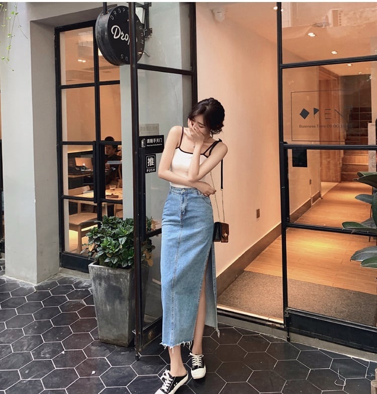 デニムスカート ロングスカート ボトムス スカート レディース タイト デニム 切りっぱなし ロング ミモレ丈 スリット ハイウエスト セクシー おしゃれ 春 夏 秋 10代 20代 30代 大きいサイズ xl きれいめ カジュアル コーデ スカート 細身 ストレート デニム ジーンズ ストレート ブルーデニム 無地 大人カジュアル セレブカジュアル トレンド ポケット 切りっぱなし 休日 お出かけ デート 美脚 新作 トレンド 韓国 ファッション レディース スカート コーデ db1000
