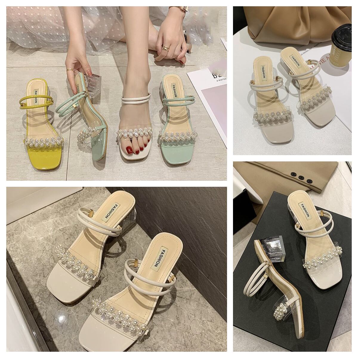 サンダル レディース シューズ ミュール パンプス クリア パステルカラー 太ヒール ローヒール パール おしゃれ 大人可愛い ガーリー ストラップ スリッパ エレガント 6? ヒール 個性的 ミドルヒール クリアヒール おしゃれ オシャレヒール チャンキーヒール OL 通勤 オフィス 学生 通学 デート ママ イエロー 黄色 白 ホワイト グリーン 緑 春 夏 10代 20代 30代 40代 きれいめ コーデ セレブカジュアル 韓国 ファッション トレンド db1078