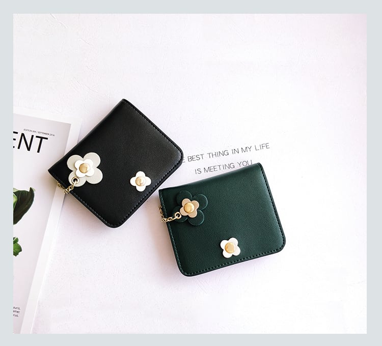 財布 レディース 二つ折り 小さめ コンパクト ミニ財布 かわいい おしゃれ お花 本革 牛革 チャーム ボタン ウォレット カード入れ 小銭入れ 誕生日 プレゼント 母の日 友達 お祝い 財布 小さい きれいめ 上品 普段使い ガーリー ラブリー キュート ミニマリスト 高級感 札入れ カードスロット レザー バックル 10代 20代 30代 40代 50代 ブラック 黒 グリーン 緑 ピンク 無地 クリスマス プレゼント 金運 トレンド db1037