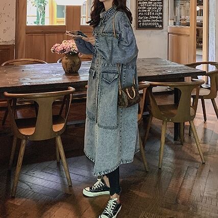 【送料無料】 アウター レディース デニム コート ロング トレンチコート スタンドカラー 長袖 ブルーデニム 無地 ウォッシュドデニム 女子 こなれ感 抜け感 大人カジュアル かっこいい きれいめ おしゃれ セレブ S M L XL 大きいサイズ 秋 冬 10代 20代 30代 OL 通勤 オフィス 韓国 ファッション レディース トレンド コーデ db1090