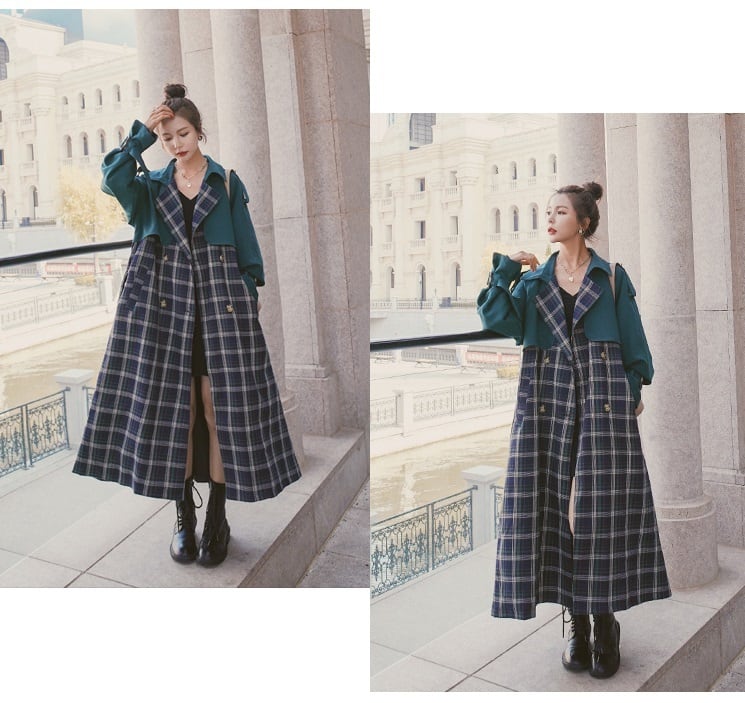 【送料無料】 アウター レディース コート ロング トレンチコート チェック柄 切り替え バイカラー 秋カラー 緑 大人可愛い きれいめ 長袖 トラッド ウインドブレーカー 無地 チェック 格子縞 グリーン 女子 抜け感 ゆったり セレブ おしゃれ ベルト S M L XL 大きいサイズ 秋 冬 10代 20代 30代 OL 通勤 オフィス 個性的 韓国 ファッション レディース トレンド コーデ db1096