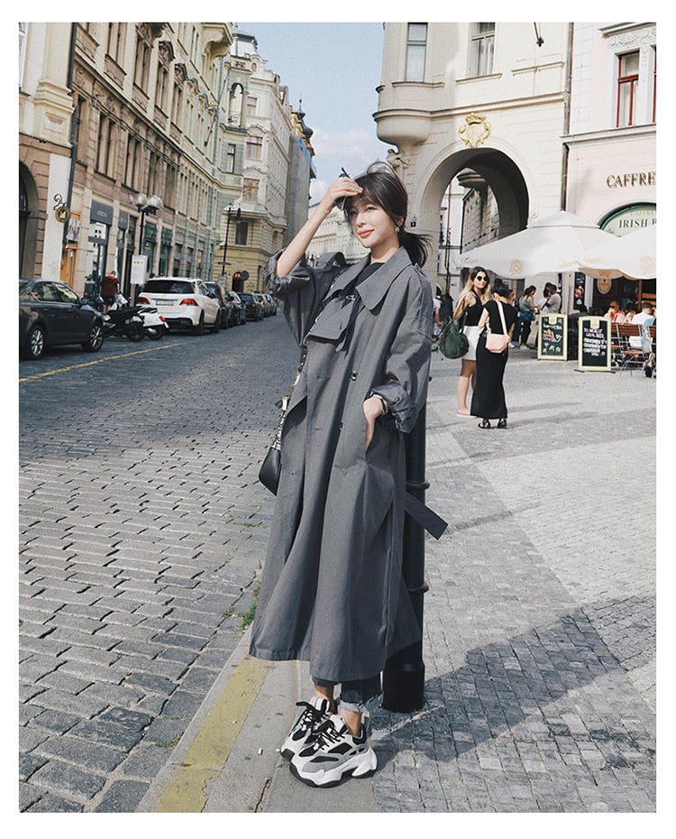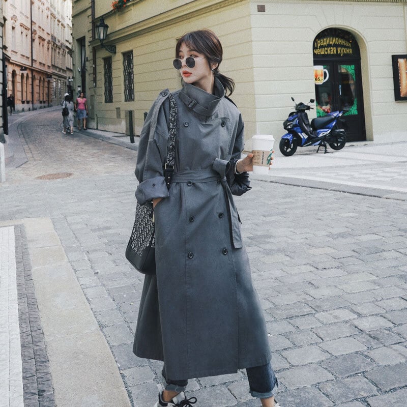 【送料無料】 アウター レディース コート ロング トレンチコート ロングコート グレー 無地 長袖 トラッド ウインドブレーカー シック 大人女子 抜け感 シンプル かっこいい こなれ感 ゆったり セレブ 大人カジュアル ルーズ メンズライク おしゃれ ベルト お出掛け 旅行 S M L XL 大きいサイズ 秋 冬 10代 20代 30代 OL 通勤 オフィス きれいめ 韓国 ファッション レディース トレンド コーデ db1097
