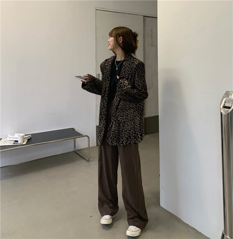【送料無料】 2色 ジャケット レディース ロング ヒョウ柄 レオパード 大人カジュアル 上着 ブレザー アウター コート ショート丈 長袖 グレー ブラウン こなれ感 ラフ かっこいい 大人女子 オーバーサイズ ロングトップ 春 秋 10代 20代 30代 ゆったり ルーズ感 韓国 ファッション レディース アウター 抜け感 着回し 普段着 トレンド db1102