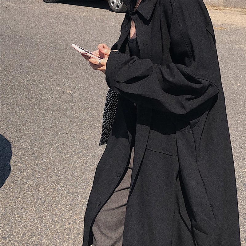 【送料無料】 2色 アウター レディース コート ロング シャツ風 トレンチ シャツワンピ 無地 長袖 かっこいい 大人カジュアル ラフ オーバーサイズ ブラック 黒 グリーン 緑 シンプル こなれ感 メンズライク トラッド 女子 ゆったり おしゃれ ワンマイル 秋 冬 10代 20代 30代 OL 通勤 オフィス きれいめ クール 韓国 ファッション レディース トレンド コーデ db1109