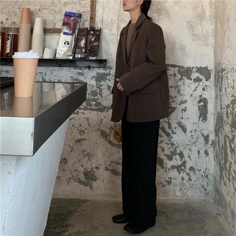 【送料無料】 2色 ジャケット レディース ロング ブレザー アウター コート ショート丈 テーラードジャケット シンプル 無地 長袖 ブラウン 茶 ブラック 黒 メンズライク オーバーサイズ きれいめ カジュアル ショート コート おじさん 上着 長袖 春 秋 10代 20代 30代 ゆったり ルーズ感 韓国 ファッション レディース アウター こなれ感 抜け感 ラフ 着回し 普段着 db1112