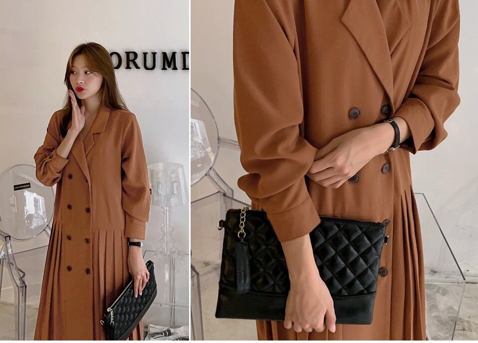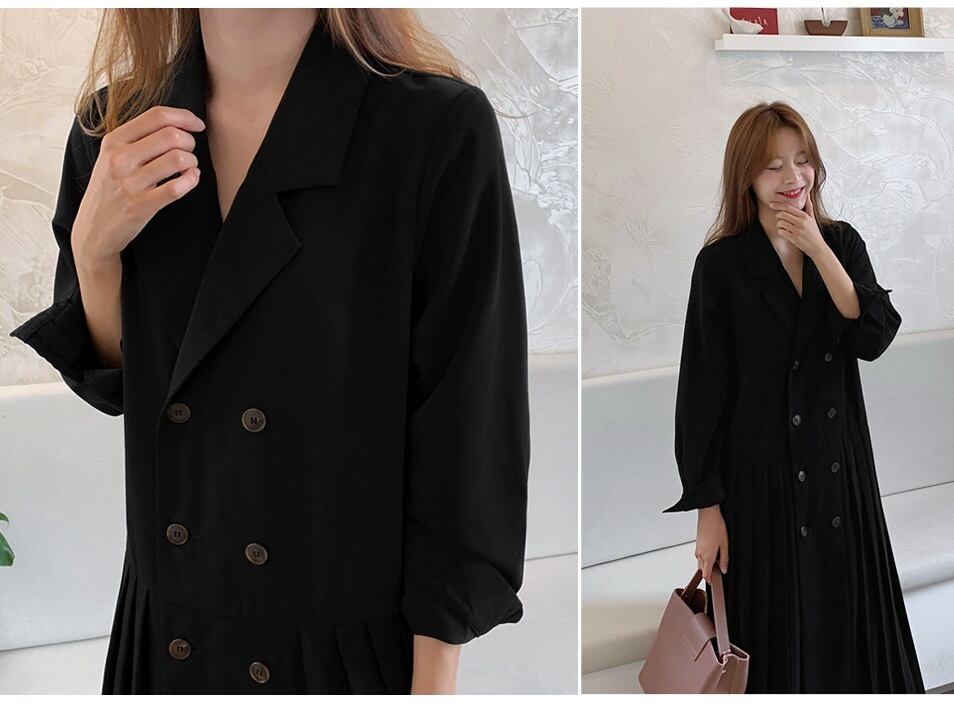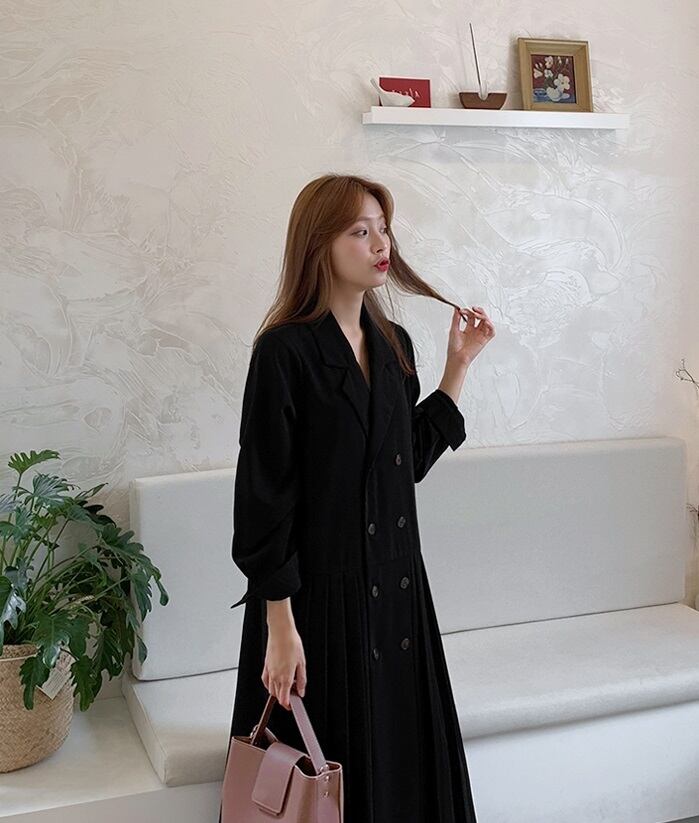 【送料無料】 2色 アウター レディース コート ロング ワンピース ワンピ ドレス トレンチコート ダブルボタン 長袖 プリーツ 切り替え デザイン おしゃれ きれいめ ブラウン 茶 ブラック 黒 ロング丈 大人カジュアル 個性的 お出掛け 旅行 S M L XL 大きいサイズ 秋 冬 10代 20代 30代 OL 通勤 オフィス 大人可愛い 韓国 ファッション レディース トレンド コーデ db1117