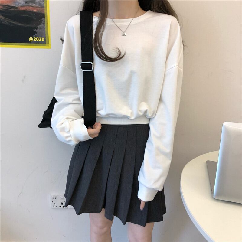 【送料無料】 トップス レディース シャツ ブラウス カットソー 長袖 ラウンドネック プルオーバー 無地 ショート丈 バックリボン かわいい おしゃれ バックコンシャス ホワイト 白 ブラック 黒 グレー モノトーン 春 秋 10代 20代 おしゃれ 休日 デート トレンド 韓国 ファッション コーデ スタイル db1140
