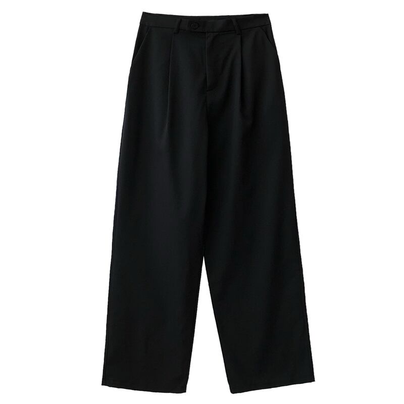 タックの入ったストレートワイドパンツ。