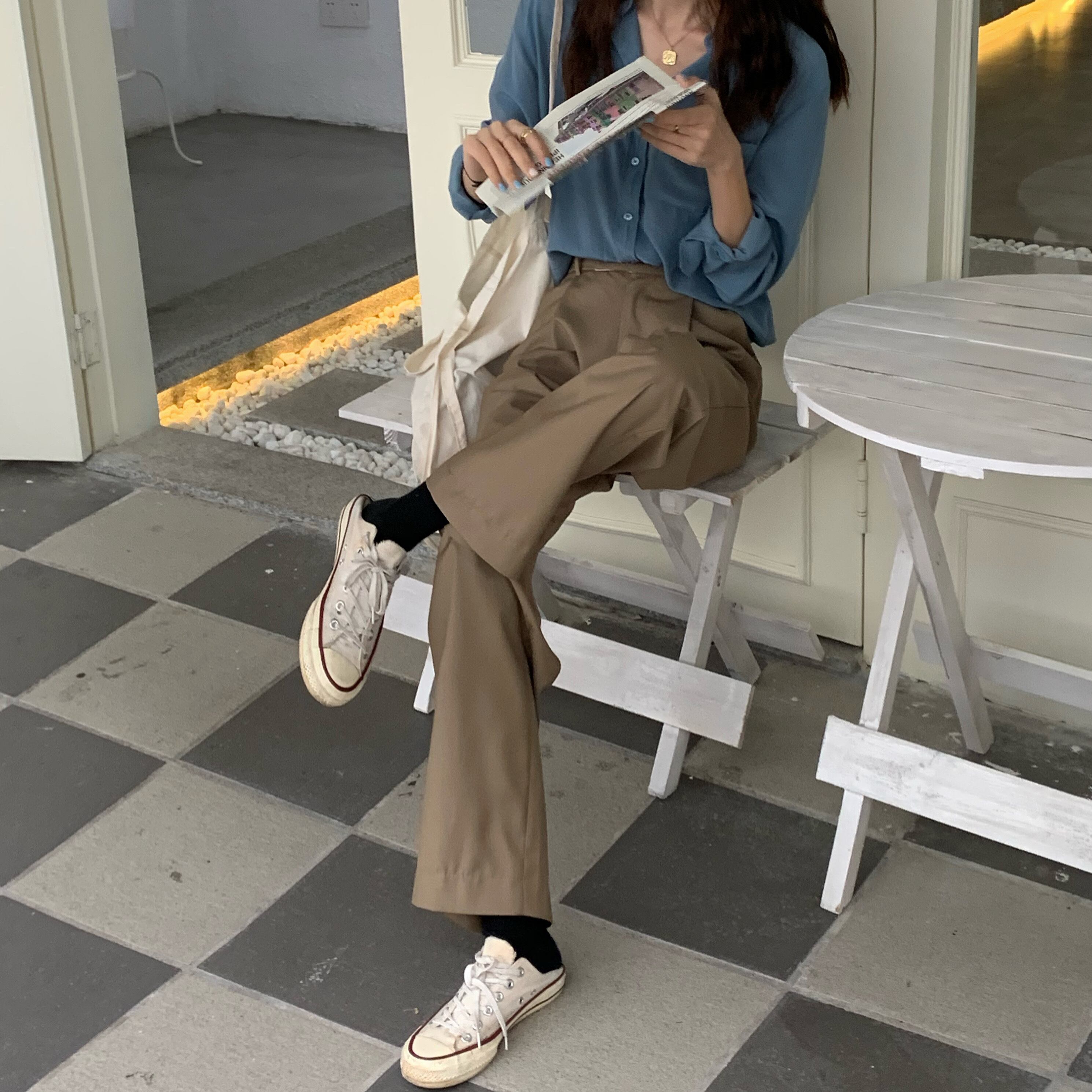 【送料無料】 3色 ワイドパンツ ストレートパンツ レディース パンツ ボトムス ズボン 春 秋 かっこいい シンプル 大人カジュアル 10代 20代 30代 無地 ハイウエスト ブラック 黒 グレー カーキ スポーティ アクティブ おしゃれ 着回し こなれ感 ラフ オフィス 韓国 レディース ファッション きれいめ コーデ db1153