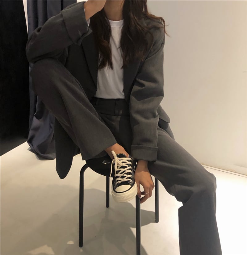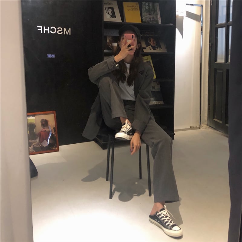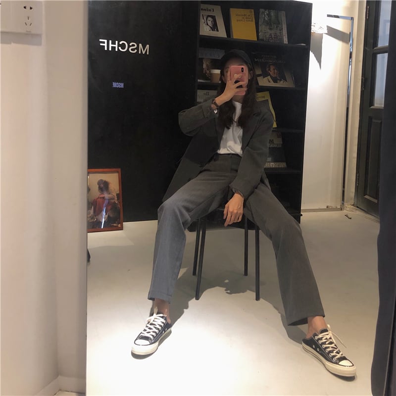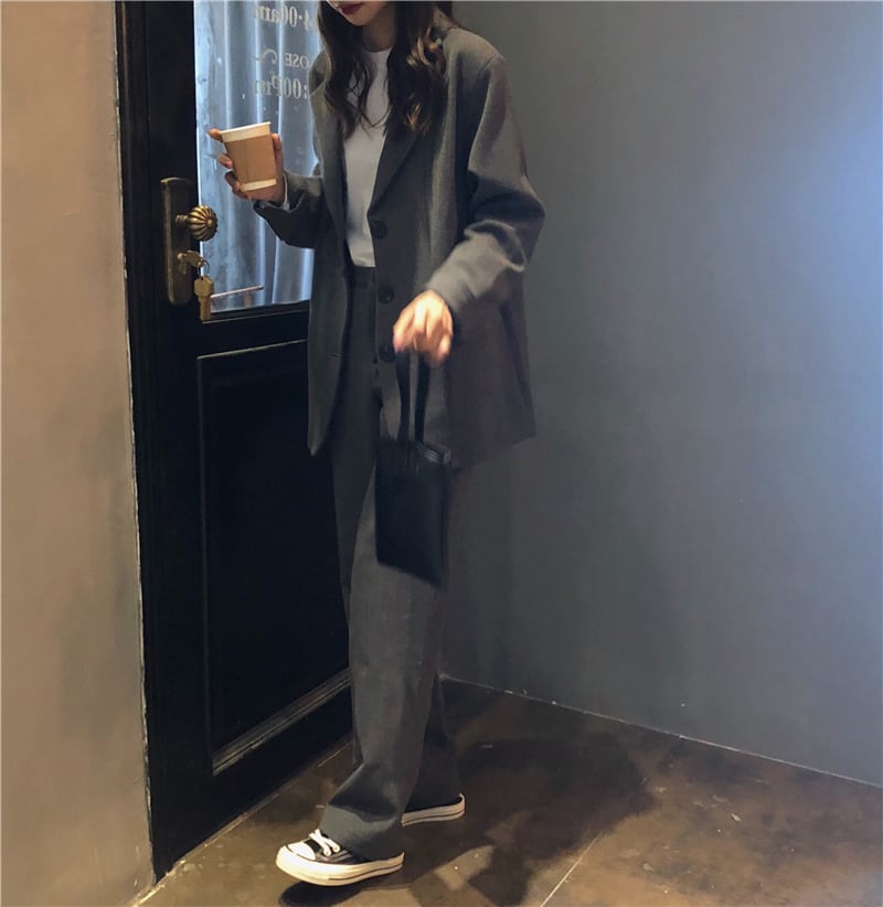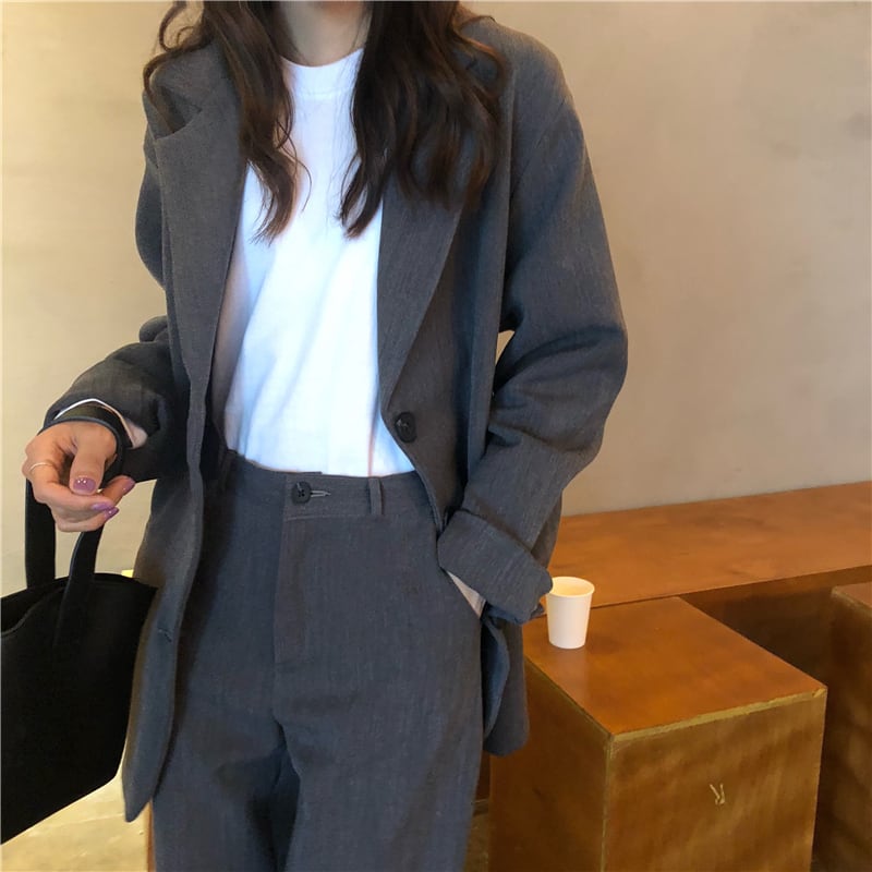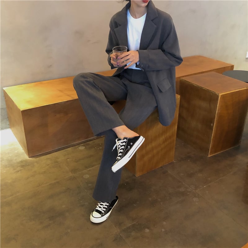 【送料無料】セットアップ レディース ジャケット パンツ 2点セット グレー 無地 こなれ感 おしゃれ 大人カジュアル シンプル スーツ ワイドパンツ ストレートパンツ ロング丈 ジャケット ハイウエスト 長袖 大人女子 かっこいい きれいめ 大人 おしゃれ 着回し セレブ ラフ 着回し 春 秋 10代 20代 30代 S M OL オフィス 休日 デート トレンド 大人 韓国 ファッション コーデ スタイル db1161
