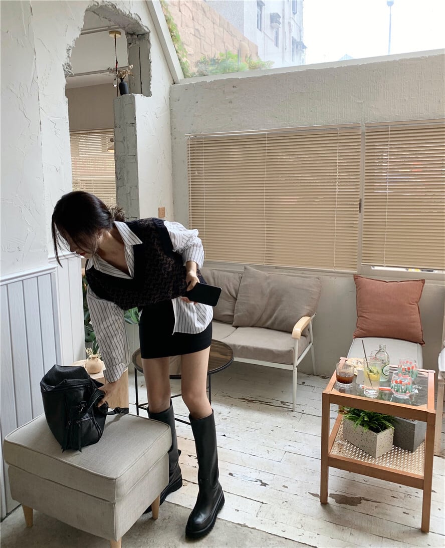 レトロな雰囲気のVネックベストです。