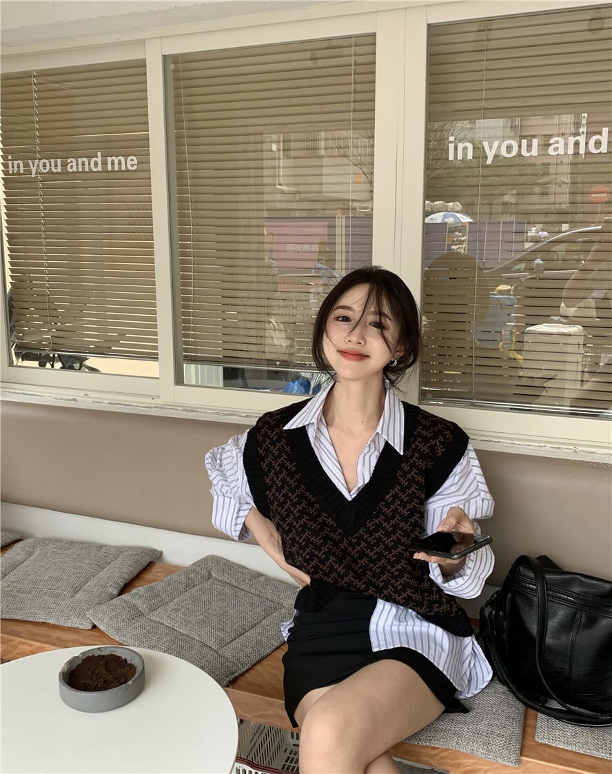 【送料無料】 ニットベスト トップス レディース ベスト アウター 重ね着 コーデ Vネック ノースリーブ チョッキ 可愛い 大人カジュアル おしゃれ ファッション ルーズ こなれ感 OL 通勤 茶色 茶系コーデ 着回し ラフ 10代 20代 30代 秋 冬 女性らしい シック シンプル レトロ 体型カバー 細見え 柄 ゆったり 大きめ 韓国 ファッション db1180