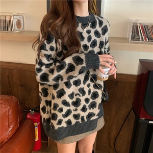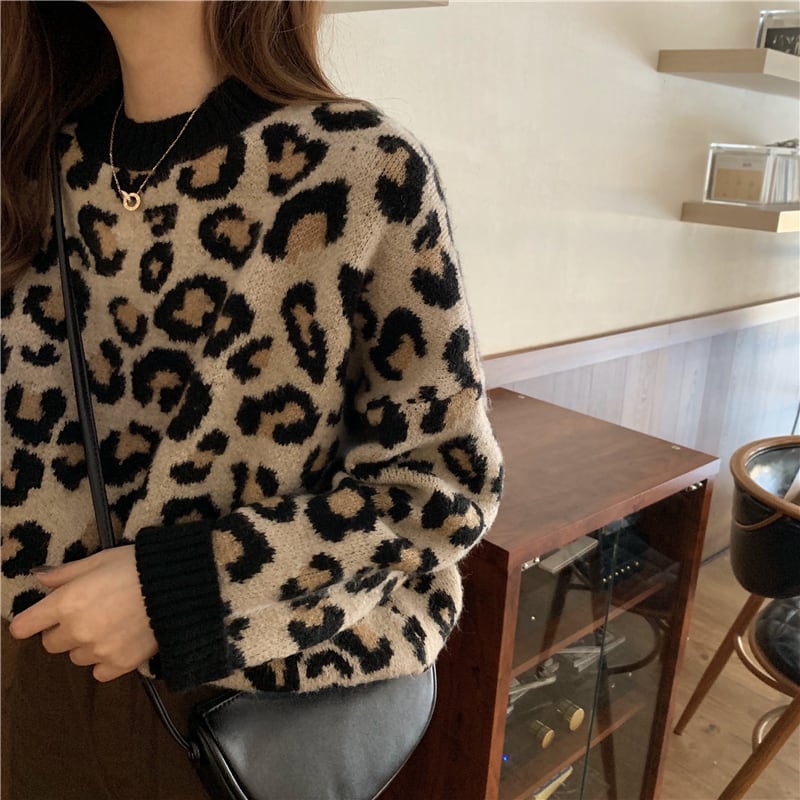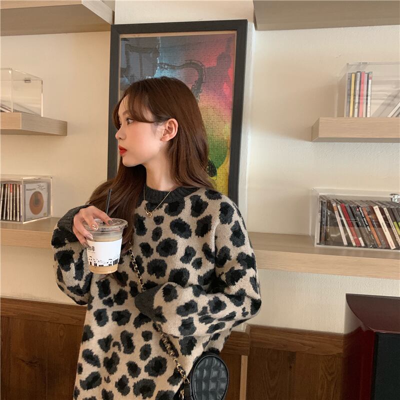 【送料無料】 2色 トップス レディース セーター ニット ヒョウ柄 レオパード きれいめ 大人カジュアル おしゃれ アイテム ルーズ こなれ感 OL 通勤 茶色 茶系コーデ 着回し ラフ 10代 20代 30代 秋 冬 女性らしい フリーサイズ ラウンドネック リブ バイカラー 韓国 ファッション レトロ お洒落 かっこいい スタイル db1187