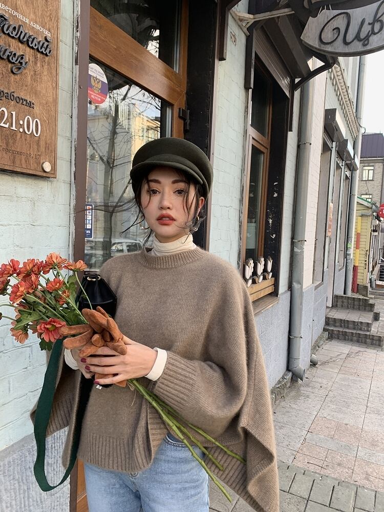 【送料無料】 トップス レディース セーター ニット ショール ケープ風 おしゃれ ブラウン 大人カジュアル こなれ感 ラウンドネック アウター 無地 きれいめ 重ね着 可愛い カジュアル ショート丈 ルーズ OL 通勤 茶色 茶系コーデ 着回し シンプル ラフ 10代 20代 30代 春 冬 秋 女性らしい 女子力 着痩せ 体型カバー 細見え 春 秋 10代 20代 30代 韓国 ファッション ワンマイル コーデ db1196