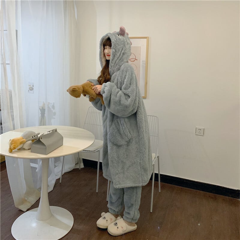 【送料無料】 モコモコ ルームウェア レディース もこもこ かわいい 上下セット パジャマ 寝巻き 部屋着 ホームウェア 恐竜 怪獣 前開き 2way ガウン ワンピース フリース コスプレ 着ぐるみ セットアップ フーディー 2点セット パンツ インスタ映え パープル ブルー 紫 青 ラブリー キュート 防寒 暖かい お揃い コーデ 可愛い 女子会 お泊まり 長袖 ポケット フード付き 10代 20代 韓国 ファッション db1202
