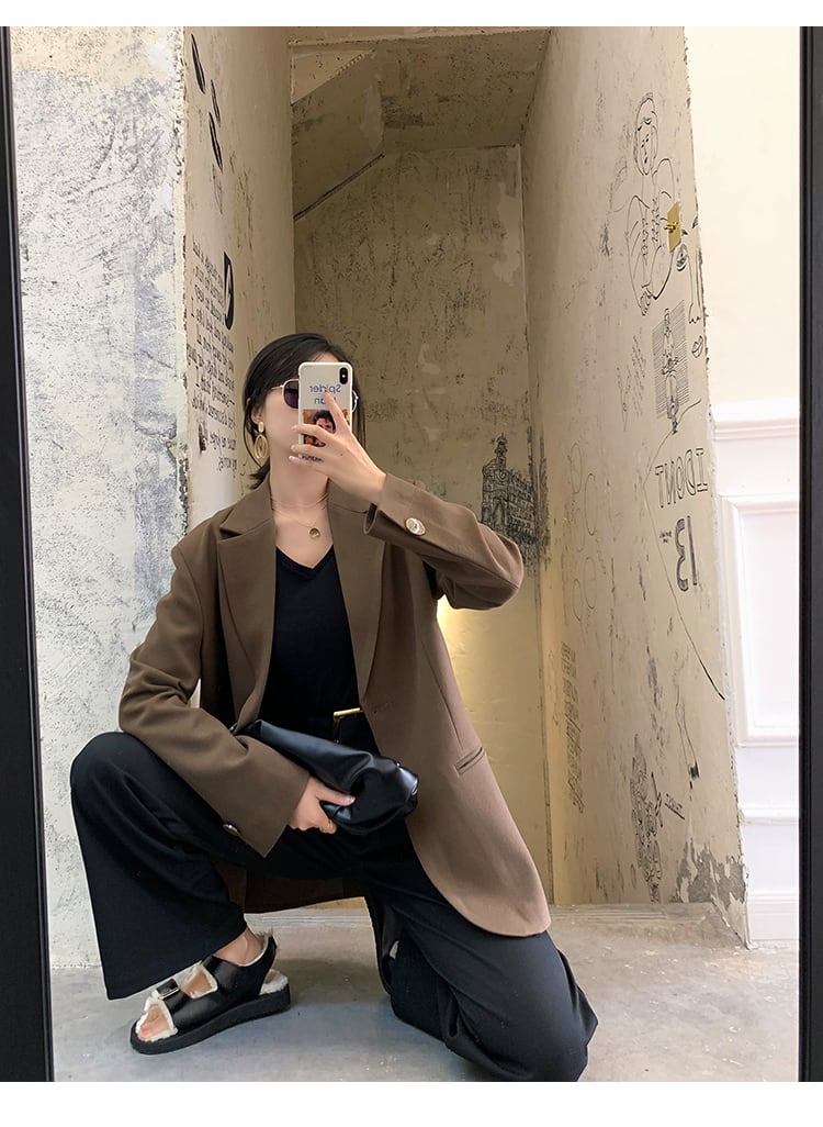 【送料無料】 ジャケット レディース ロング アウター ショート丈 スーツ シングルブレスト Vネック シンプル 無地 大人カジュアル きれいめ コーデ 着回し 長袖 ボタン オフィス ブラウン ベーシック 定番 通勤 OL 春 秋 10代 20代 30代 デート 茶 シック こなれ感 セレブカジュアル おしゃれ トレンド 女子力 S M L XL 大きいサイズ 韓国 ファッション アウター db1209