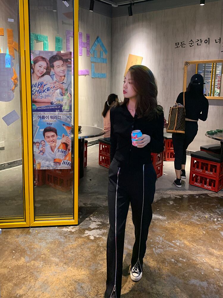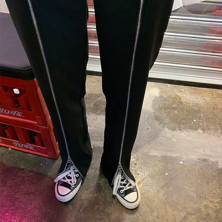 【送料無料】 パンツ レディース 黒 ストレート ボトムス ズボン ジッパー ライン ロング おしゃれ かっこいい 大人カジュアル 無地 10代 20代 30代 おしゃれ かっこいい カジュアル パンツ コーデ ハイウエストゆったり こなれ感 ラフ 大きいサイズ XL トレンド 着回し 細見え 韓国 レディース ファッション きれいめ コーデ メンズライク db1211