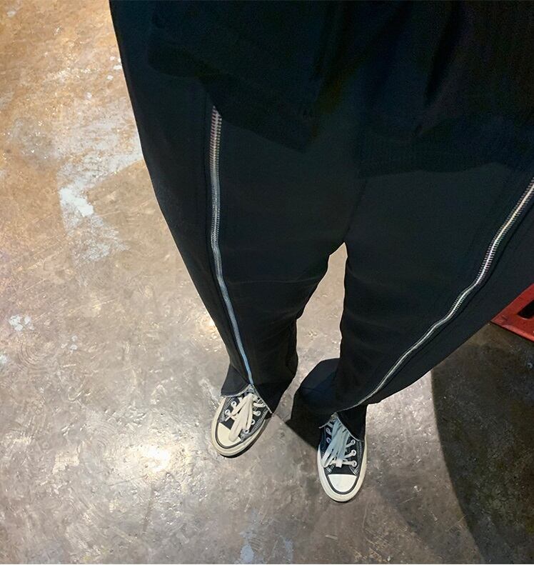 センターのダブルジッパーがかっこいいブラックパンツです。