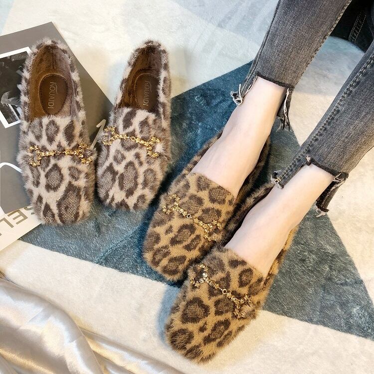 防寒とおしゃれが両立できる、大人可愛いヒョウ柄のフラットシューズ。