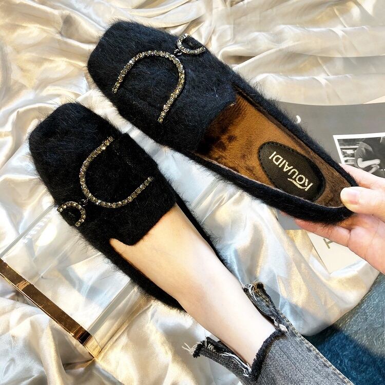 【送料無料】 ぺたんこ シューズ レディース もこもこ フラット シューズ 靴 黒 茶色 ファー 無地 スクエアトゥ ローヒール ペタンコ スリッポン おしゃれ きれいめ 大人カジュアル 大きいサイズ 25.0 25.5 小さいサイズ 22.0 22.5 キラキラ セレブカジュアル デート 通勤 OL オフィス ブラウン ブラック こなれ感 10代 20代 30代 秋 冬 トレンド 防寒 韓国 ファッション お洒落 コーデ db1228