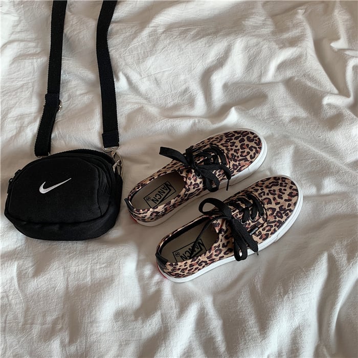 歩きやすいスリッポンタイプのヒョウ柄シューズ。