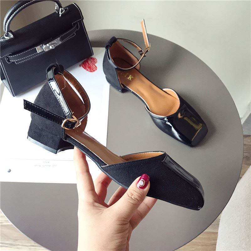 スクエアトゥにエナメルとスエードの切り替えデザインがおしゃれ☆