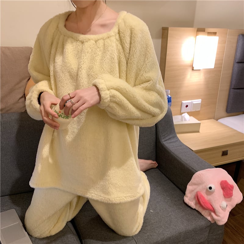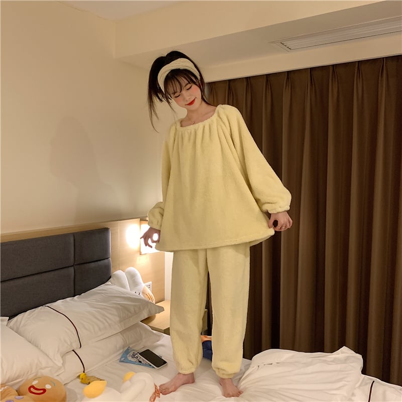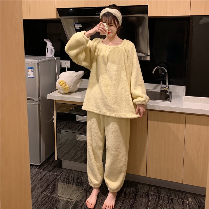 【送料無料】 モコモコ ルームウェア レディース もこもこ かわいい 上下セット 秋冬 無地 パジャマ 寝巻き 部屋着 ホームウェア フリース 温かい 2way オフショル 暖かい シンプル カジュアル ラフ ゆったり 楽ちん セットアップ 2点セット パンツ グリーン ピンク 黄色 イエロー 緑 キュート 防寒 お揃い コーデ 可愛い 女子会 お泊まり 長袖 10代 20代 30代 韓国 ファッション db1259
