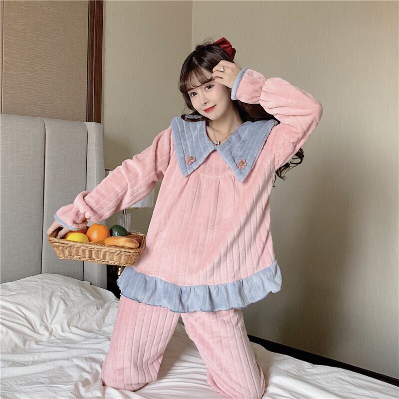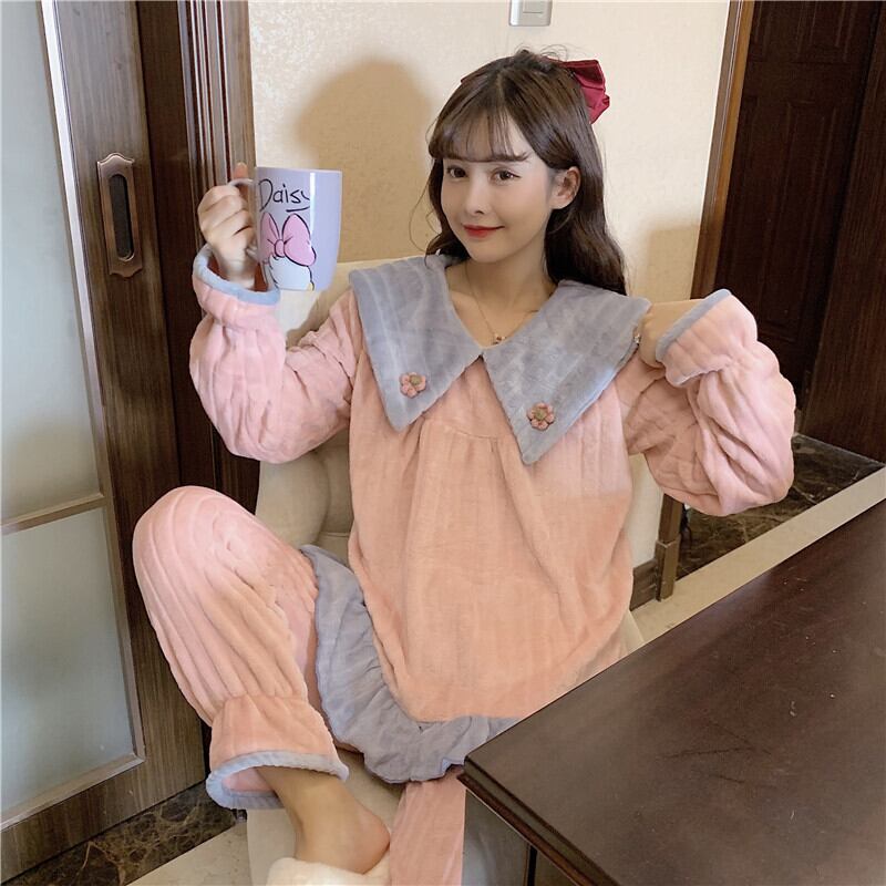 【送料無料】 モコモコ ルームウェア レディース もこもこ かわいい 上下セット 秋冬 バイカラー パジャマ 寝巻き 部屋着 ホームウェア フリース 温かい 可愛い ラブリー 暖かい おしゃれ フリル お花 大きいサイズ XL ラフ ゆったり 楽ちん セットアップ 2点セット パンツ ピンク ブルー 切り替え デザイン キュート 防寒 お揃い コーデ 可愛い 女子会 お泊まり 長袖 10代 20代 韓国 ファッション db1260