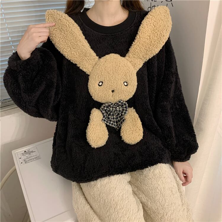 【送料無料】 モコモコ ルームウェア レディース もこもこ かわいい 上下セット 秋冬 うさぎ 前開き パジャマ 寝巻き 部屋着 ホームウェア フリース ボア ぬいぐるみ 黒 モノトーン 大人可愛い 温かい ラブリー 暖かい 大きめ ビッグサイズ セットアップ 2点セット パンツ インスタ映え ラブリー ガーリー キュート 防寒 暖かい お揃い コーデ 可愛い 女子会 お泊まり 長袖 ゆったり 楽ちん 10代 20代 韓国 ファッション db1262