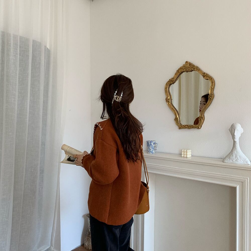 【送料無料】 即納あり ニット トップス レディース かわいい おしゃれ プルオーバー セーター ラウンドネック 無地 長袖 ステッチ アシンメトリー 個性的 サイドスリット シンプル アプリコット ホワイト ブラウン 白 無地 重ね着 10代 20代 秋 冬 トレンド 着回し コーデ デート 通学 学生 通勤 OL オフィス 韓国 ファッション db1269