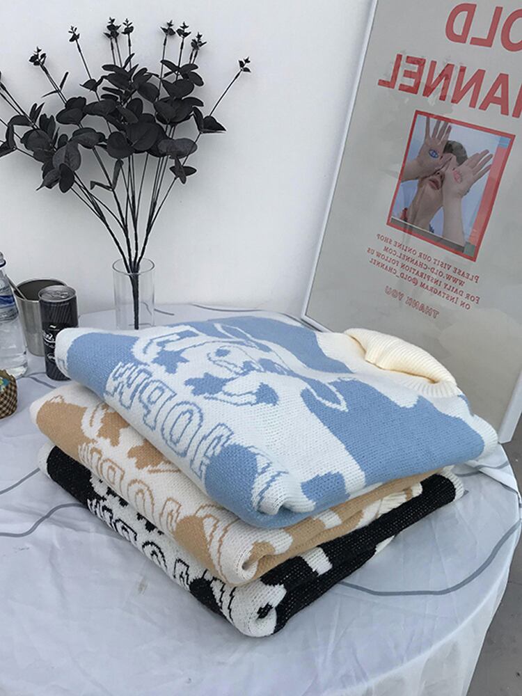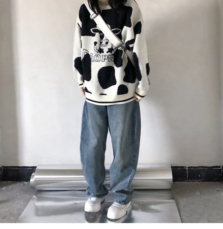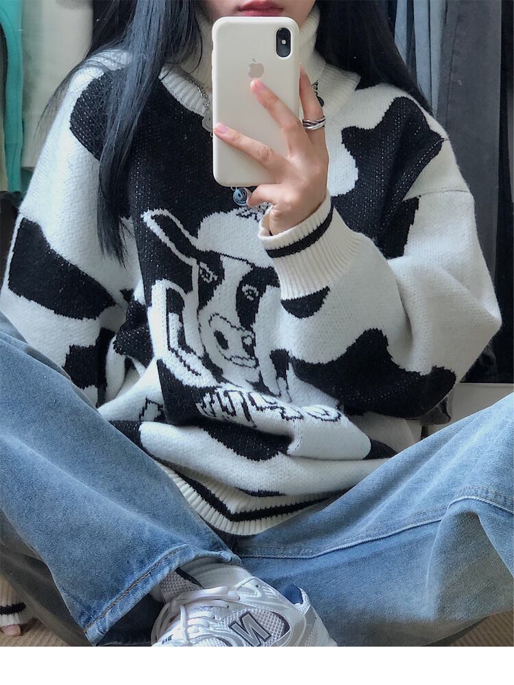 【送料無料】 3色 トップス レディース ニット セーター 牛柄 ウシ おしゃれ カジュアル 個性的 アイテム ハイネック キャラクター デザイン ルーズ こなれ感 面白い 干支 うし コーデ 黒 青 黄色 バイカラー ゆる トップス オーバーサイズ 大きめ ゆったり 着回し ラフ 10代 20代 春 秋 冬 韓国 ファッション レトロ お洒落 スタイル 存在感 目立つ キュート ダボダボ ドロップショルダー db1295