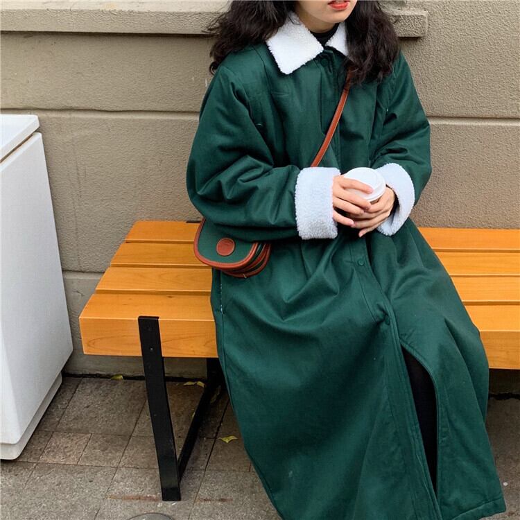 【送料無料】 ロング コート ボア レディース アウター もこもこ ミドル丈 グリーン 無地 カジュアル おしゃれ 大人可愛い ルーズ オーバーサイズ バイカラー アウター コーデ スタジャン風 長袖 ビッグシルエット ゆったり 大きめ アウター ジャンパー ボアコート ブルゾン 緑 お洒落 通学 学生 グリーン 10代 20代 秋 冬 トレンド 韓国 ファッション 個性的 db1303