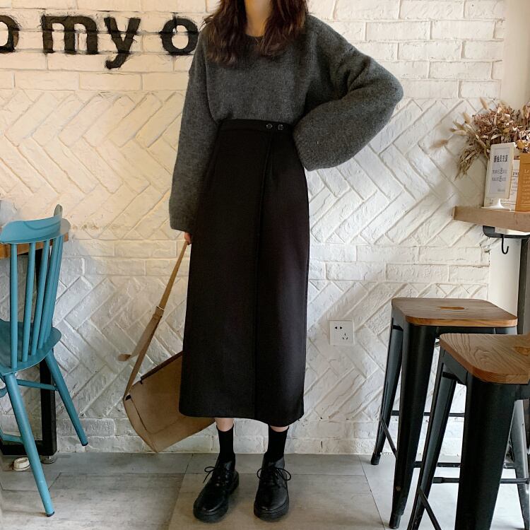【送料無料】 スカート レディース ミモレ丈 黒 無地 ストレート シンプル 大人可愛い ラップ スカート ボトムス Iライン タイト ハイウエスト レトロ カジュアル 着回し 定番 優秀アイテム 黒スカート 黒コーデ 学生 通学 通勤 OL オフィス ブラック 膝下 ひざ丈 10代 20代 30代 秋 冬 トレンド 脚長 db1309