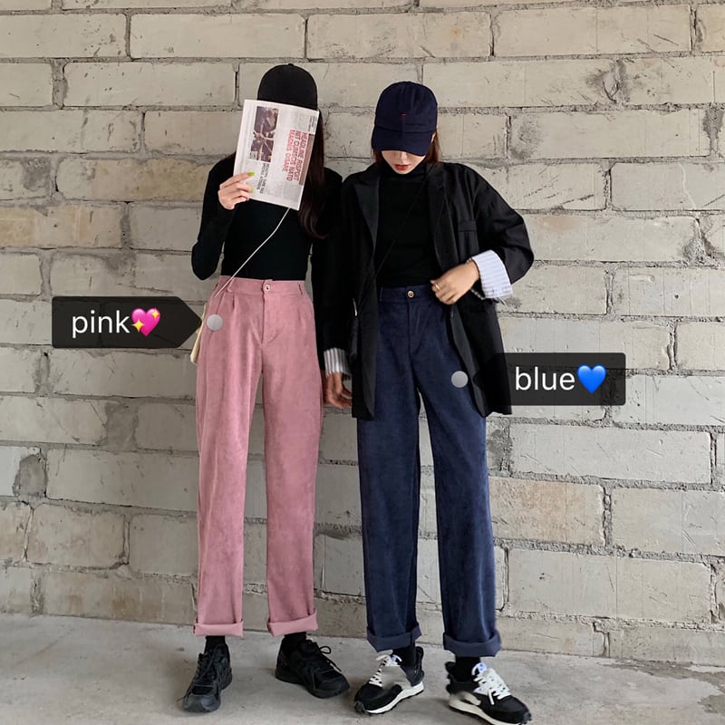 【送料無料】 2色 パンツ レディース コーデュロイ 無地 ルーズ ボトムス ズボン ストレート ワイド ハイウエスト おしゃれ カジュアル 大人可愛い レトロ ロールアップ カラーパンツ ワイドパンツ ゆったり 楽ちん 着回し ヘビロテ ロング アンクル丈 9分丈 ピンク ブルー 青 華やか ファッション デート 学生 通学 10代 20代 30代 秋 冬 こなれ感 個性的 存在感 トレンド 韓国 ファッション db1312