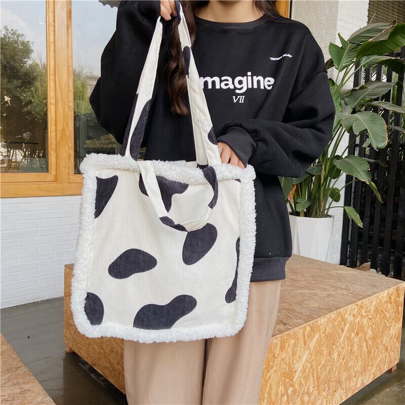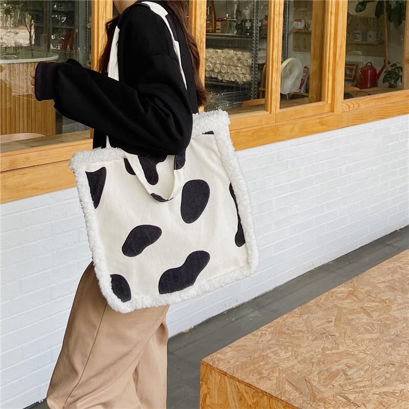 【送料無料】 バッグ かばん 鞄 レディース トートバッグ ハンドバッグ 2way a4 大容量 牛柄 ウシ ボア スクエア型 かわいい おしゃれ 個性的 干支 肩掛け 手提げ バック カバン 春 秋 10代 20代 30代 トート モノトーン 白 黒 うし 面白い ユニーク 収納 韓国 ファッション bag 2021 お洒落 もこもこ 四角 インスタ映え コーデ バッグ 布 通学バック カジュアル デイリー 存在感 大きめ db1331