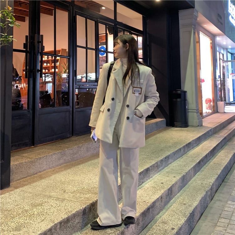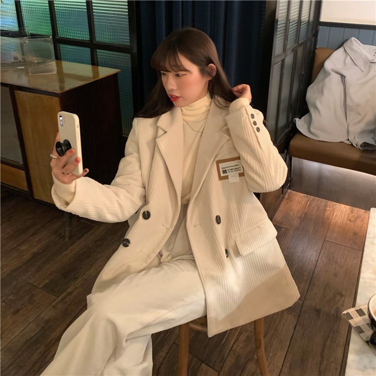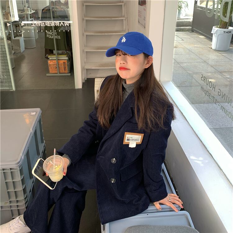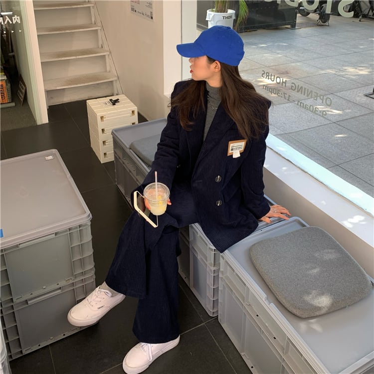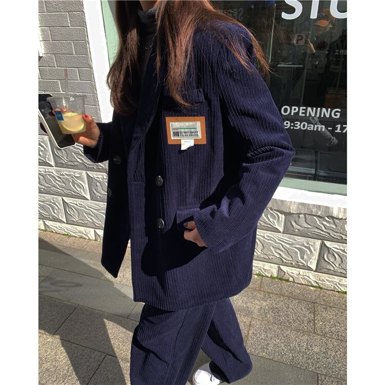 【送料無料】 2色 セットアップ レディース ジャケット パンツ コーデュロイ 上下セット スーツ かっこいい こなれ感 おしゃれ 長袖 上着 無地 ネイビー アプリコット ベージュ ワイドパンツ 大人カジュアル ラフ 存在感 2点セット 通学 学生 OL 通勤 オフィス ラフ メンズライク 10代 20代 30代 秋 冬 春 トレンド 人気 女子力 着回し 存在感 韓国 コーデ ツーピース db1341