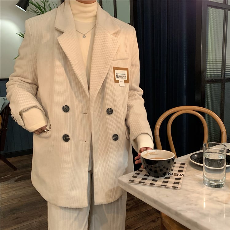 コーデュロイのジャケットとワイドパンツのセットアップ