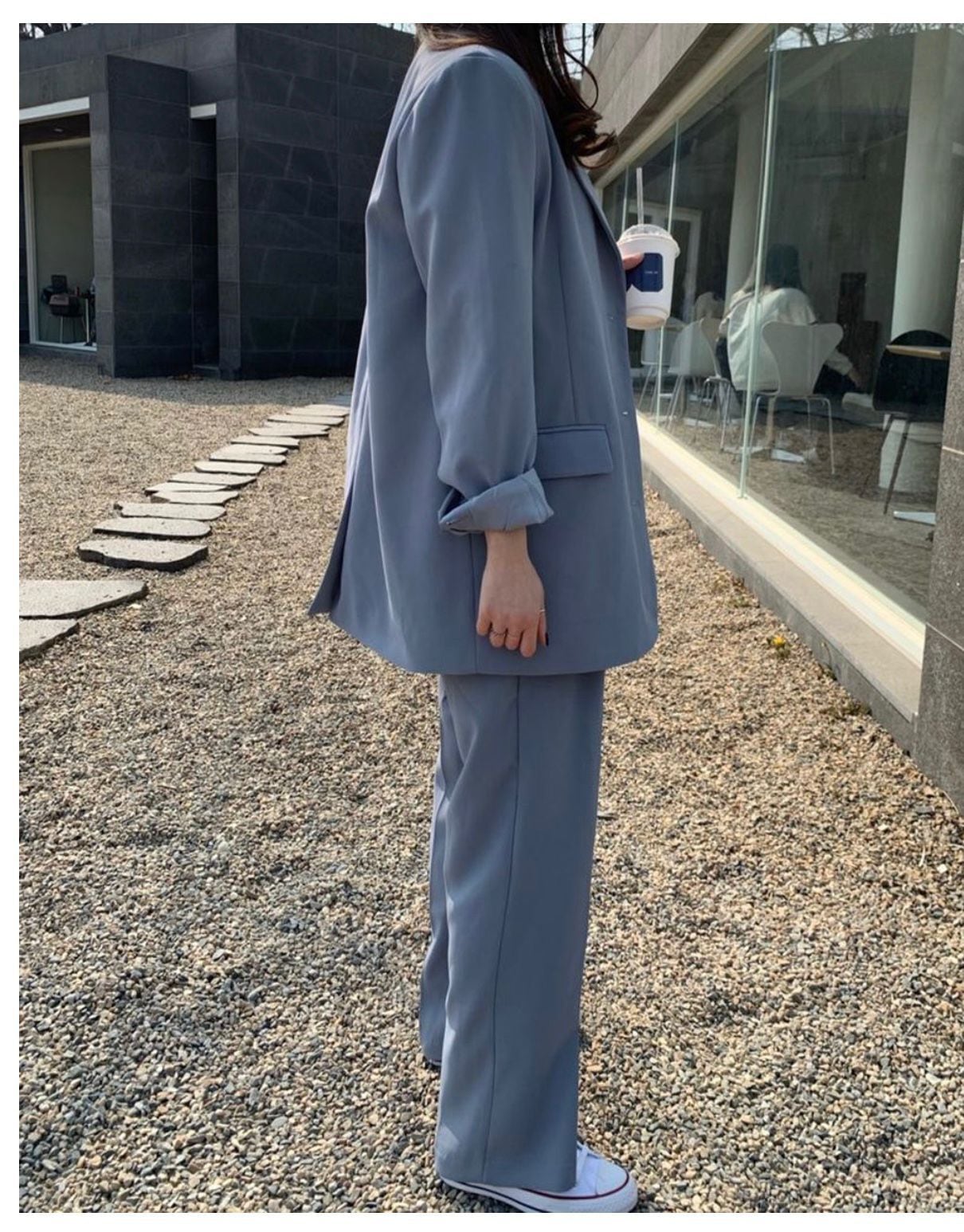 【送料無料】セットアップ レディース スーツ ワイドパンツ ハイウエスト レトロ シック シンプル カジュアル ジャケット パンツ 上下セット 無地 ブルー 青 ルーズ 大人可愛い かっこいい コーデ 大きめ ゆったり こなれ感 ファッション デート 通学 学生 OL 通勤 オフィス おしゃれ メンズライク 10代 20代 30代 春 秋 トレンド 人気 女子力 美脚 ラフ 韓国 ファッション 様になる オーバーサイズ db1344