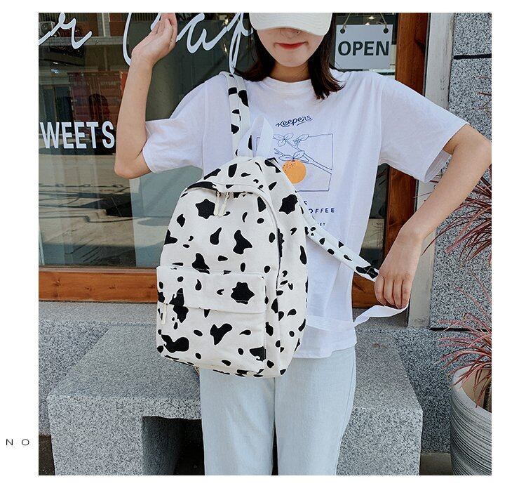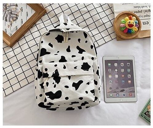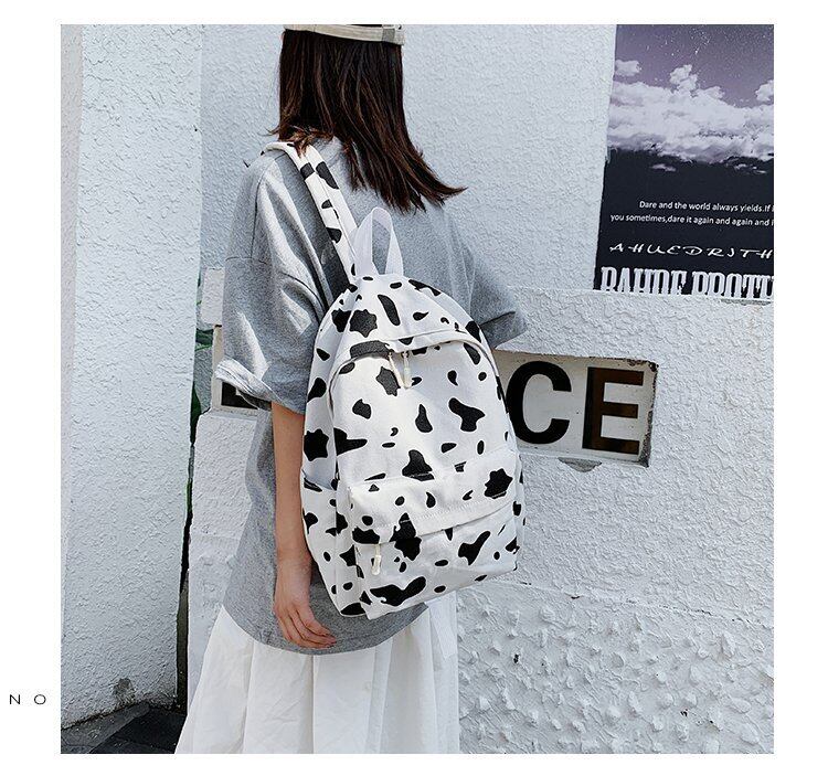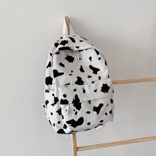 【送料無料】 リュック レディース 牛柄 バッグ かばん 鞄 大容量 ウシ キャンバス リュックサック モノトーン 帆布 カジュアル 大人可愛い 個性的 おしゃれ バックパック 干支 うし モチーフ シンプル バック 通学バック 旅行 お出かけ かわいい 存在感 学生 10代 20代 30代 デート レジャー ママ 子連れ ブラック ホワイト ファッション bag 2021 インスタ映え コーデ バッグ 韓国 人気 db1361