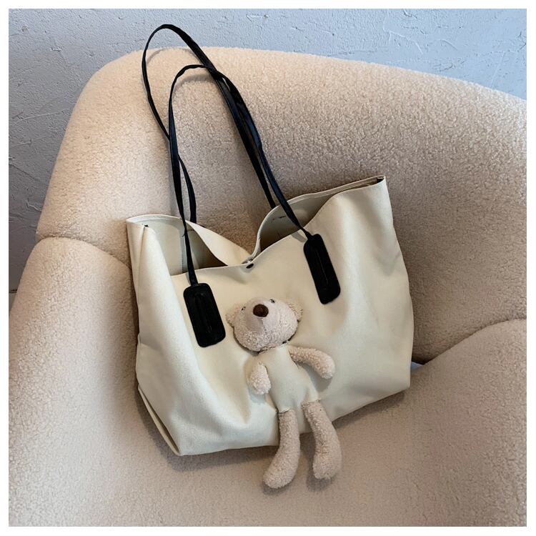 【送料無料】 バッグ かばん 鞄 レディース トートバッグ 大容量 A4 帆布バック くま ぬいぐるみ付 かわいい カジュアル 無地 バイカラー 白 黒 ブラック ホワイト クマ チャーム バッグインバッグ ポーチ付き 肩がけ バック 個性的 大人 かわいい おしゃれ キャンバス 学生 通学 春 夏 10代 20代 30代 韓国 ファッション bag 2021 帆布 インスタ映え バッグ 新作 インパクト 人気 収納力 旅行 デイリー バッグ db1377