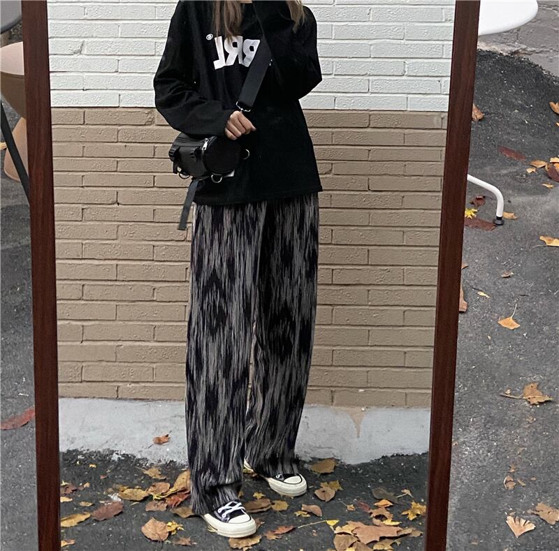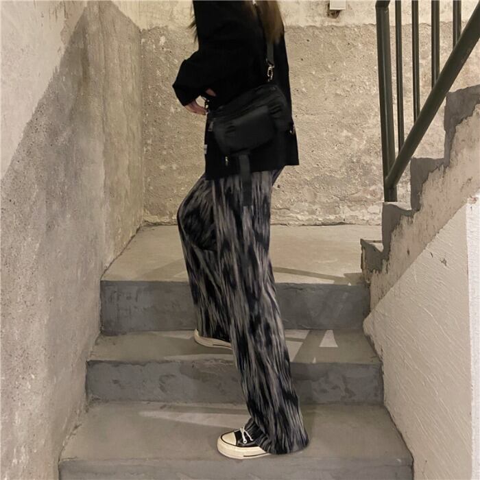 【送料無料】 パンツ レディース ワイドパンツ ルーズ かっこいい カジュアル おしゃれ ダイダイ 絞り染め風 ボトムス ズボン ハイウエスト 黒 柄 モノトーン ブラック クール 大人可愛い ゆったり 楽ちん 着回し ヘビロテ ロング ファッション デート 学生 通学 10代 20代 30代 春 秋 こなれ感 個性的 存在感 トレンド レトロ 韓国 ファッション インパクト ラフ ゆったり 楽ちん 抜け感 着回し db1386