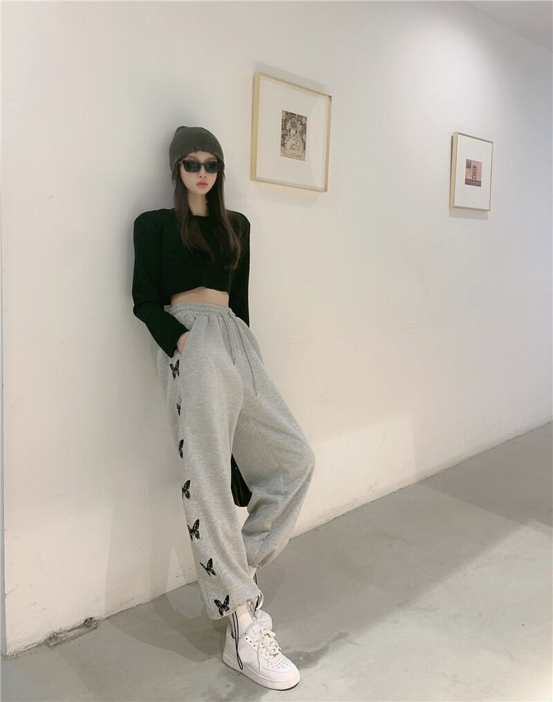 【送料無料】 パンツ レディース スウェット カジュアル 蝶 バタフライ ボトムス ズボン 大きいサイズ xl 2xl 3xl 4xl 5xl ジャージ おしゃれ かっこいい 個性的 ワイド ゆったり ハイウエスト モノトーン グレー リラックス スポーツ ヨガ ランニング ウェア 大人可愛い 部屋着 着回し ヘビロテ おうち コーデ 学生 通学 10代 20代 30代 春 秋 こなれ感 ラフ 存在感 マニッシュ 韓国 ファッション ゆるかじ 大きめサイズ ボーイッシュ パンツ db1402