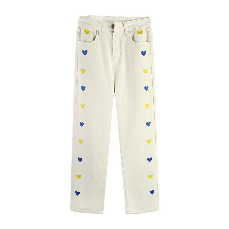 【送料無料】 パンツ レディース デニム 白パンツ ホワイトデニム カジュアル ワイドパンツ ハート型 刺繍 かわいい カジュアル おしゃれ ジーパン ジーンズ ストレートパンツ ボトムス ズボン ハイウエスト 白 無地 ホワイト ハート ボタン リラックス ゆるかじ 個性的 存在感 インパクト スポーツ 大人可愛い 着回し ヘビロテ ロングパンツ 学生 通学 10代 20代 30代 こなれ感 トレンド 韓国ファッション ユニーク パンツ 面白い だぼだぼ 楽ちん ポップ 春カラー db1407